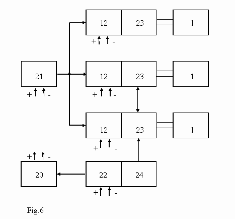 mit elektrischer Energie; 21 Frequenzgenerator; 22 Kommando-Block; 23 Phasenwachsler;