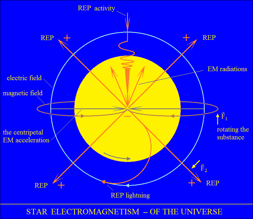 Magnetismus und das elektrische Feld um einen Stern erzeugen eine EM-Zentripetalkraft,