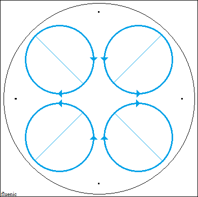 fünf Scheiben angetrieben, die den Vektorraum ausrichten,