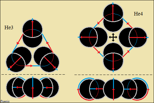orthogonal geschlossene Vektorkreise, Deuterium und Helium, verbunden