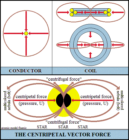 Die Zentripetalkraft polarisiert die EM-Substanz,