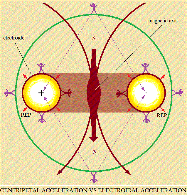 Die Substanz zwischen dem Elektroid und der magnetischen Achse wird zum Elektroid